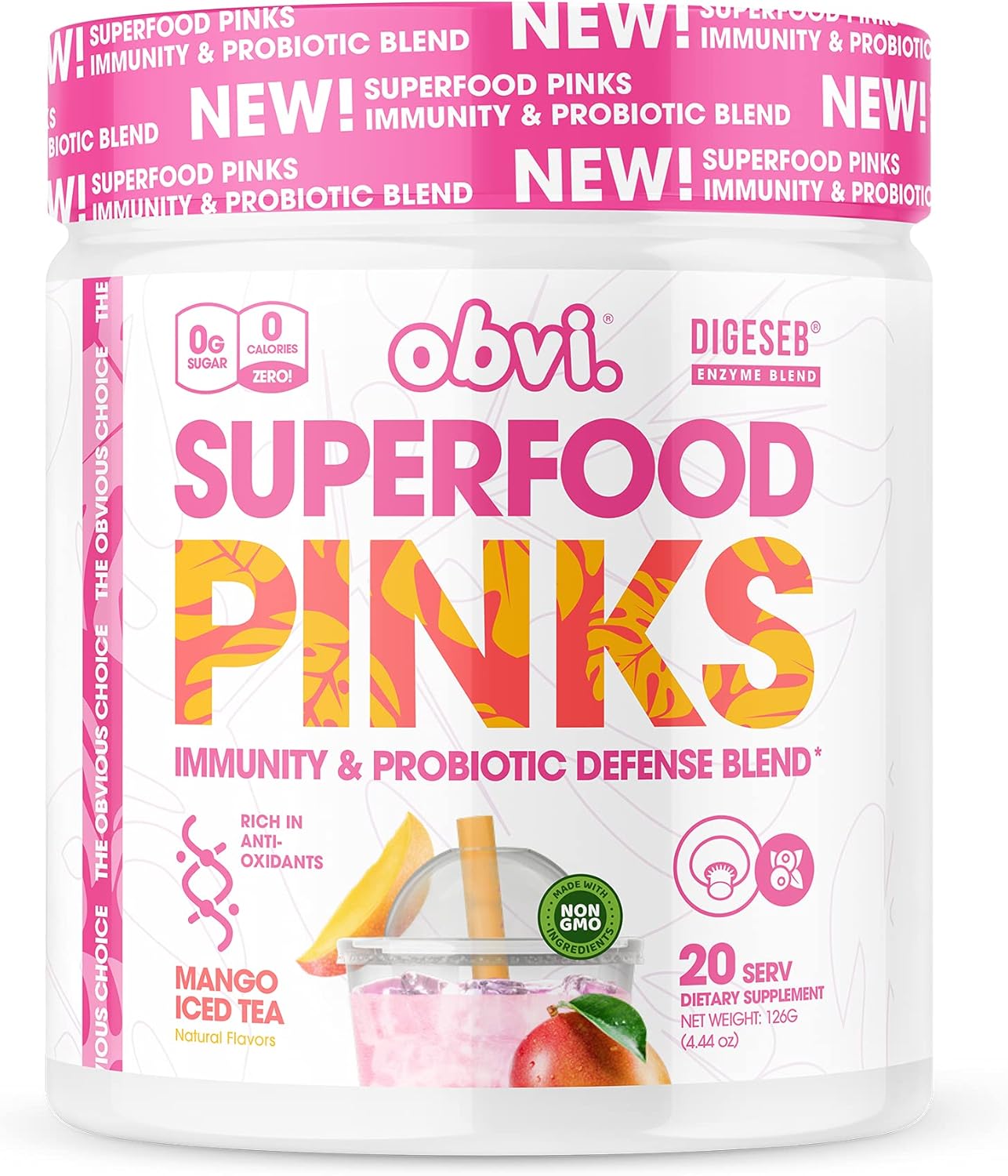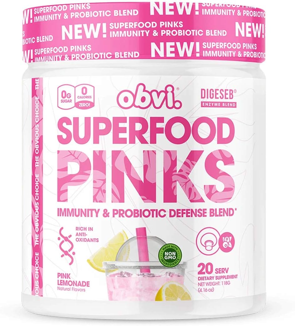Obvi Pinks SuperFood & Immunity Blend is a delicious adaptogenic, anti-inflammatory, im... [More]