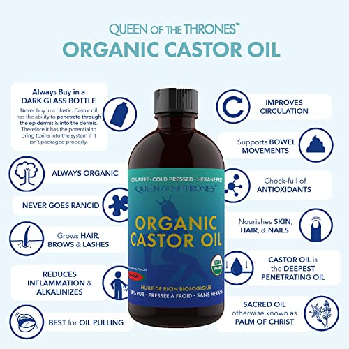 organic castor oilQueen of the Thrones Organic Castor Oil – 500mL (16.9oz) | 100% Pure, USDA Certified, Cold Pressed & Hexane Free & Extra…