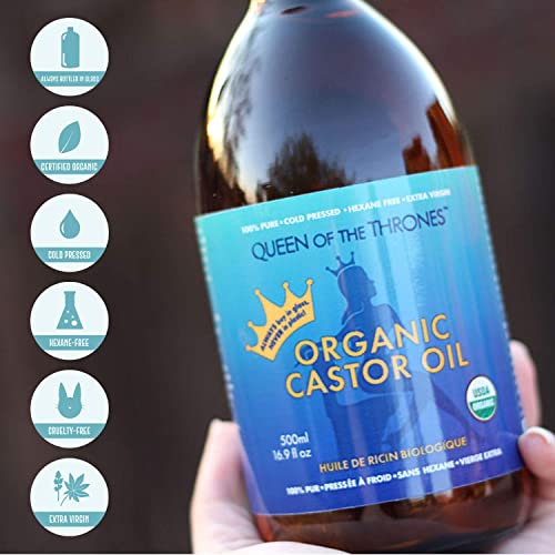 Queen of the Thrones Organic Castor Oil – 500mL (16.9oz) | 100% Pure, USDA Certified, Cold Pressed & Hexane Free & Extra…