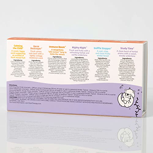 UNDILUTED BLENDS SET: This set contains 10 mL undiluted bottles of Study Time, Calming The Child, Germ Destroyer, Nighty Night, Immune Boom, and Sniffle Stopper. Formulated by our Certified Aromatherapists and Robert Tisserand, both leading experts in essential oil safety.