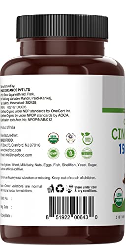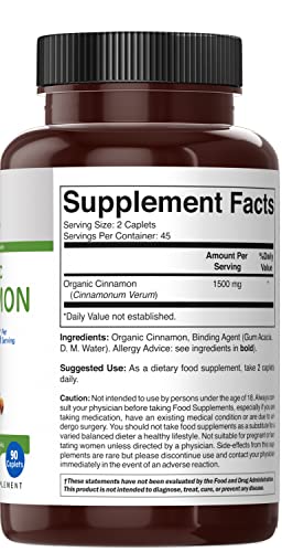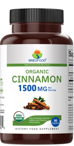 Brieofood Organic Cinnamon 1500mg, 45 Servings, Vegetarian, Gluten Free, 90 Vegetarian Tablets