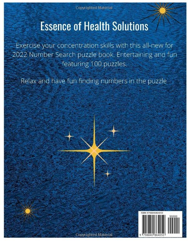 100 NUMBER SEARCH PUZZLES WITH SOLUTIONS: 8.5×11 LARGE PRINT Paperback – Large Print, July 23, 2022